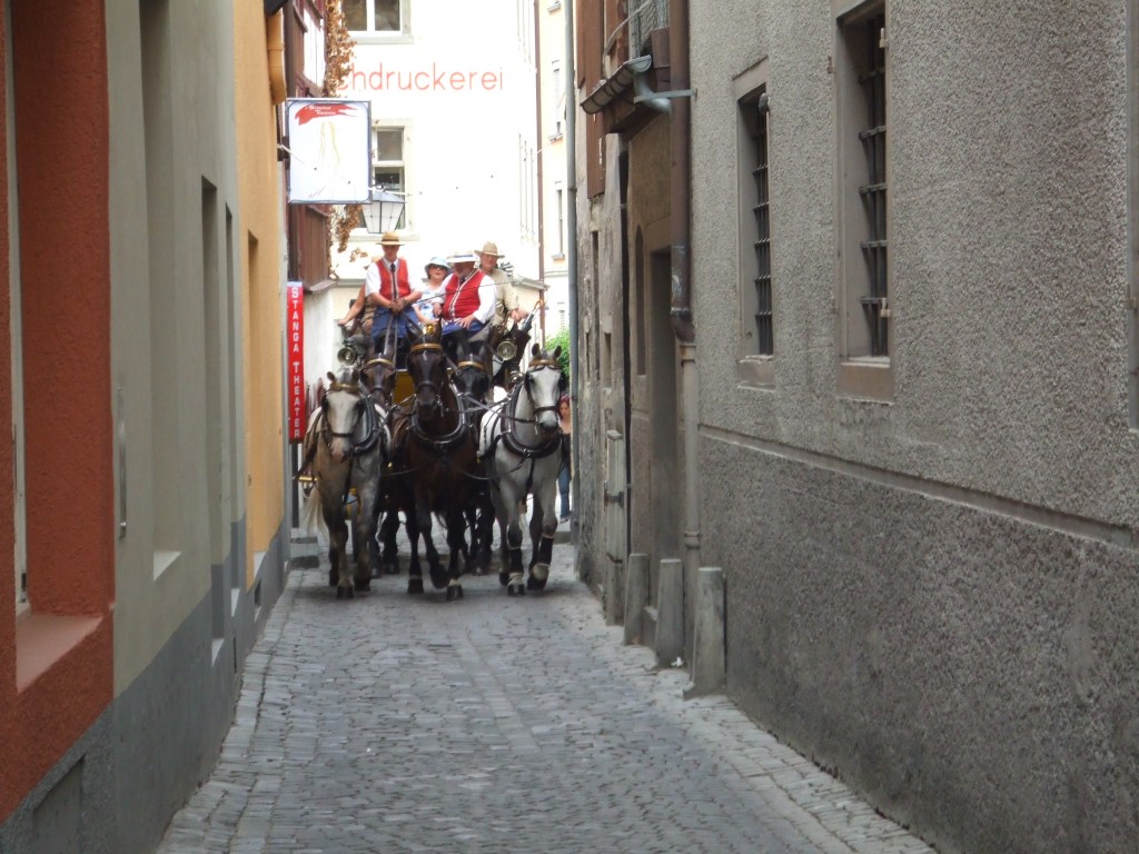 As we prepared to leave Lake Constance, I excitedly jumped onto the coach in my Bavarian post livery and took my seat next to Nemitz, welcoming aboard our nine guests. As we left Lindau in Germany, Nemitz blew his post horn to signal the start of this journey, which would cross five countries in nine days, climb 6,270 ft into the Alps, and descend one vertical mile in an afternoon in an antique coach using traditional braking methods.