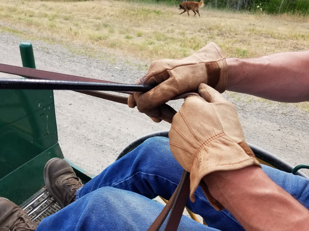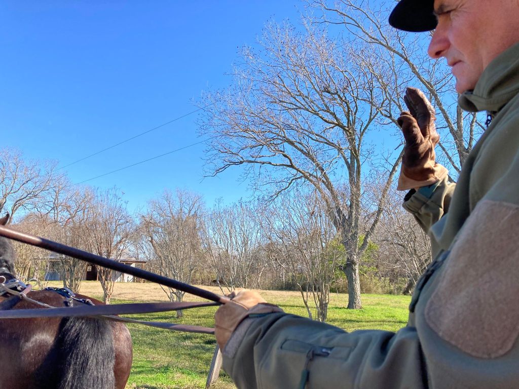 If whip aids are so important for driving, then let’s not just leave the whip in its socket on the carriage, or worse yet, in the harness room! It should be carried in the right hand, at a 45-degree angle to the dashboard of the carriage, and held by the base of your thumb. The other four fingers of the right hand are kept free to manipulate and adjust the reins, which are held in the left hand. I’ve always been taught that you should hold the whip with the ferrule in the middle of your hand when you’re not using it. This takes a little practice. In my experience, this is the one thing that new drivers struggle with the most, as they are just beginning to develop the necessary hand strength and coordination. Most modern whips don’t help matters, as they aren’t especially well balanced and tend to be top heavy. In contrast, many traditional wooden whips have the butt end of the cap filled with lead to help balance them in the hand.