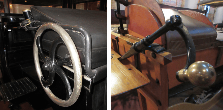 The driver’s control mechanisms can be divided generally into two types: levers, and wheels (or cranks). The wheel was more common in Europe and the lever was more common in Britain and America.