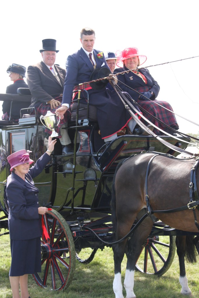 In celebration of International Women’s Day, Ranch Ride Carriage Drive recognizes two stellar four-in-hand drivers and members of the exclusive Ladies’ World Coaching Club. Barbara Stockton is an incredible force in the world of the rare Hackney breed, working as a breeder, judge, and advocate, and serving as the longtime President of the Hackney Horse Society. Caroline Dale-Leech, MBE, has served for decades as an instructor, examiner, judge, and mentor for the British Driving Society, and I am proud and humbled to count her as the greatest mentor of my own horsemanship career. In this photo, Barbara is seated next to me at the front of her beautiful coach, and Caroline, in her capacity as judge, is awarding us the trophy for the coaching championship at the 2009 Edenbridge and Oxted Agricultural Show in England. It is an honor to know both of these very accomplished horsewomen.