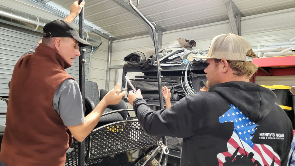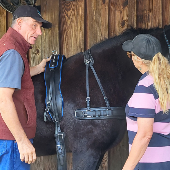 We’re excited to share that we have been partnering with Henry’s Home Horse and Human Sanctuary as they are working to establish a new therapeutic carriage driving program! Today’s wet weather prevented us from having a carriage driving lesson, but it was a good opportunity to explore carriage maintenance and harness fitting. Everyone was very engaged and we even got a chance for a bit of long-lining. We are proud to support Henry’s Home as they expand their therapeutic equine activities for veterans and first responders!